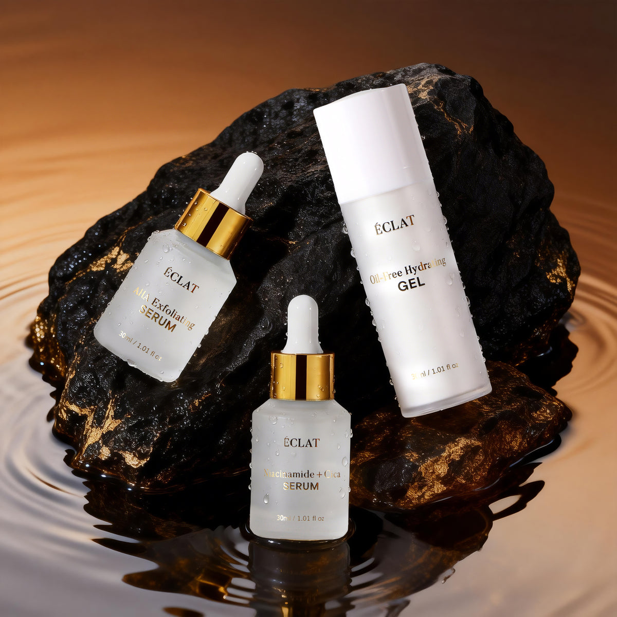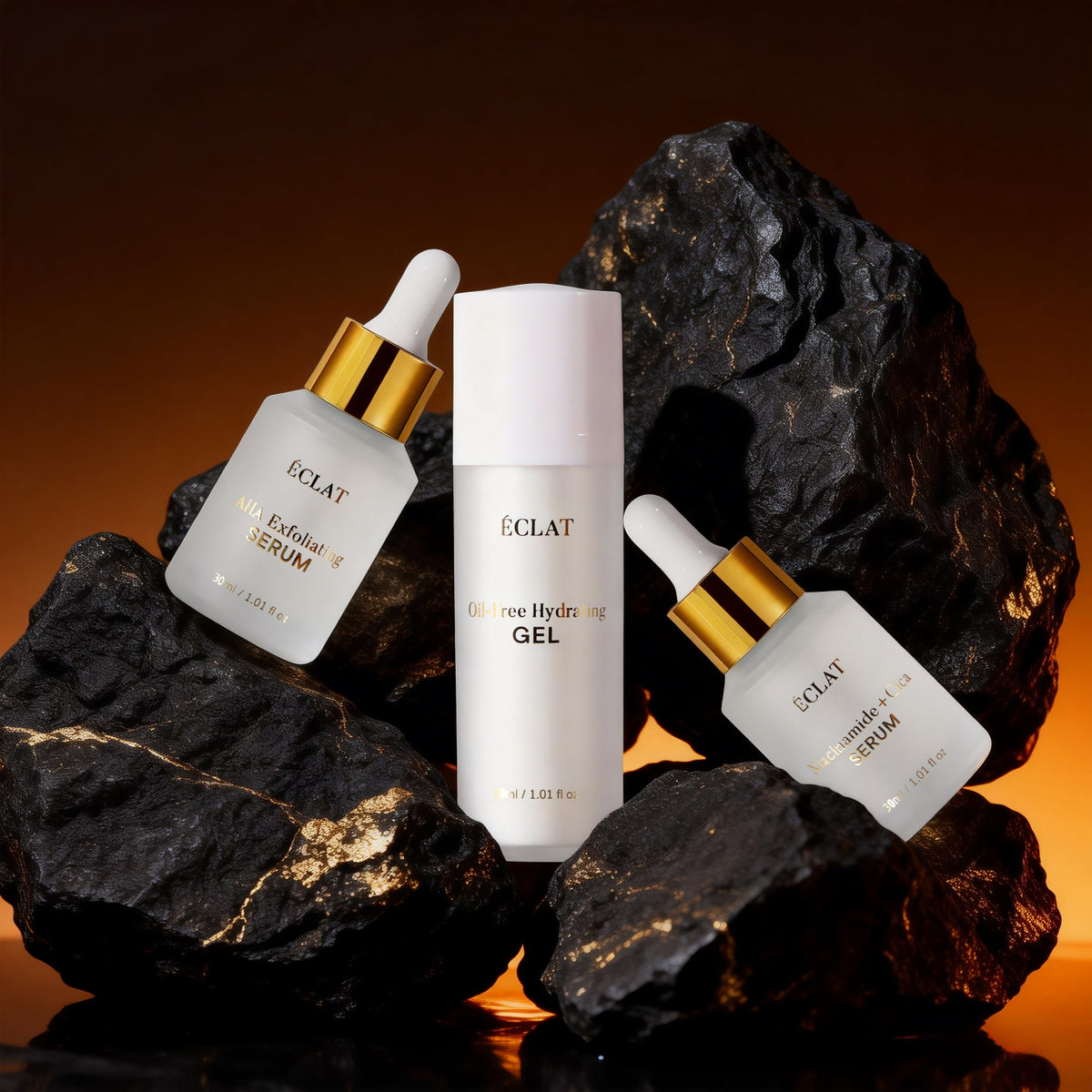 ÉCLAT targets breakouts, dark spots, and uneven texture with only the essentials — no confusing routines or unnecessary products.